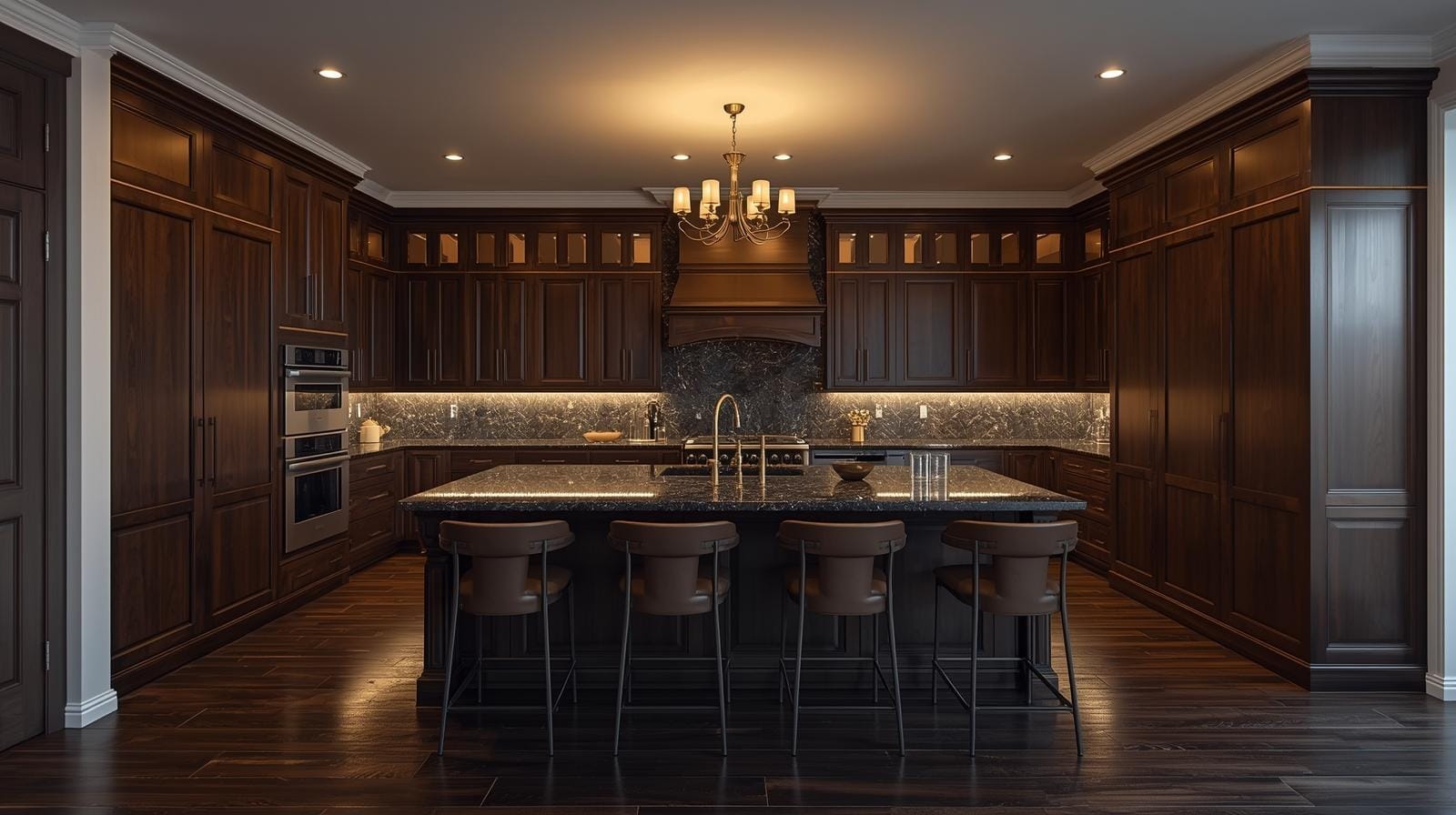 Tủ bếp thông minh: Tích hợp giá nâng hạ, kệ xoay, đèn LED cảm biến.