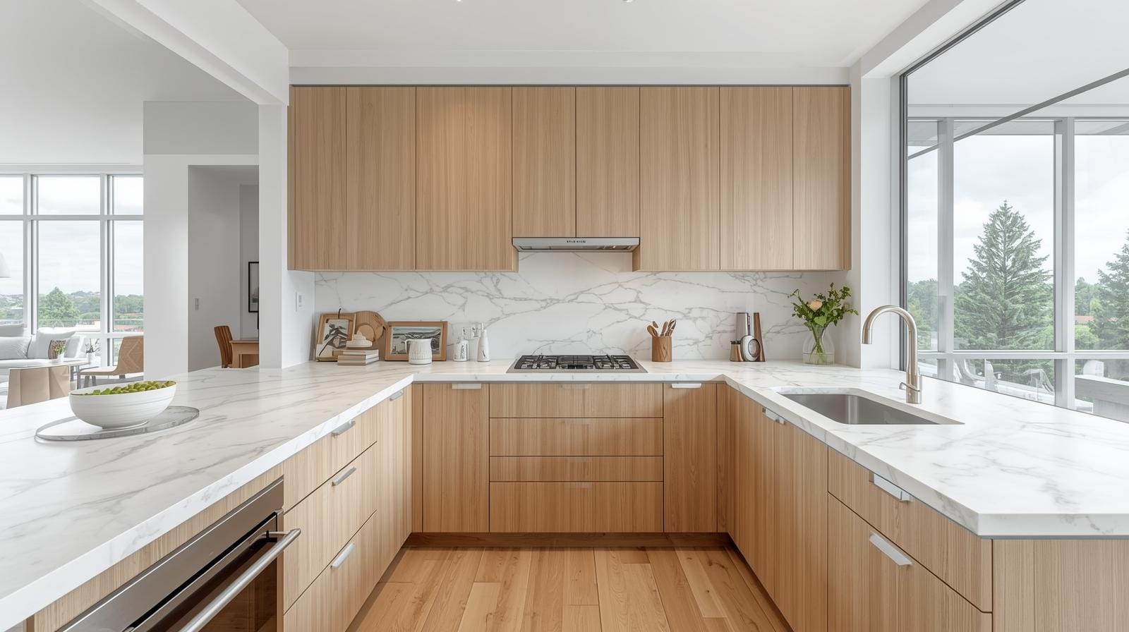 Phong cách tối giản tiếp tục lên ngôi, đặc biệt ở căn hộ chung cư và nhà phố hiện đại. Với tủ bếp gỗ sồi Nga sáng màu, gia chủ thường chọn: