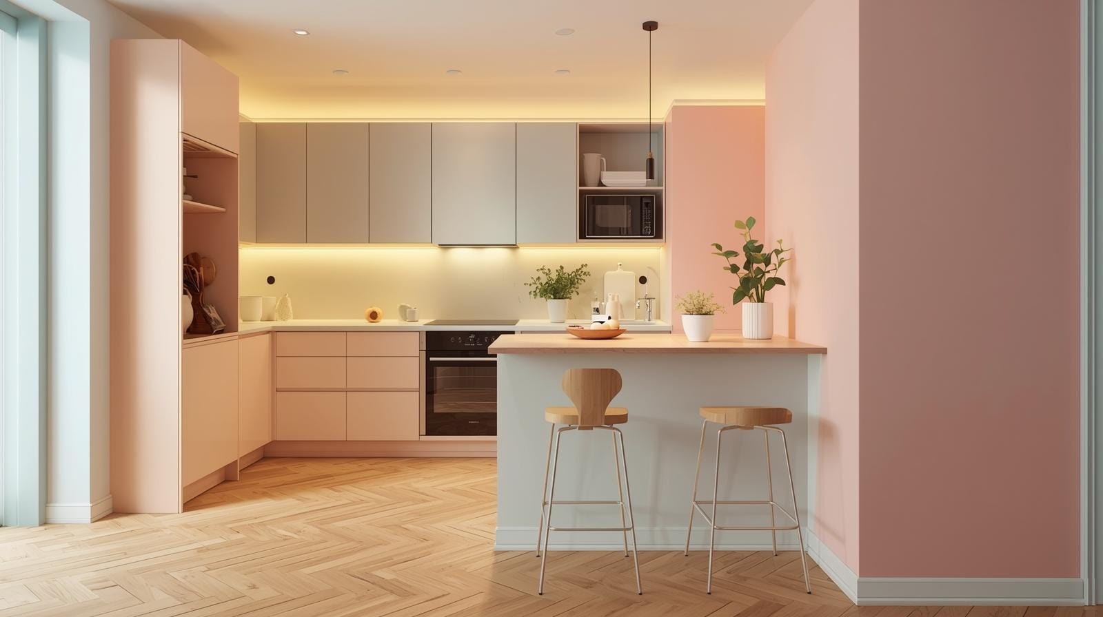 Xác định diện tích: Bếp nhỏ nên chọn chữ I hoặc chữ L; bếp rộng chọn chữ U, có bàn đảo hoặc quầy bar.