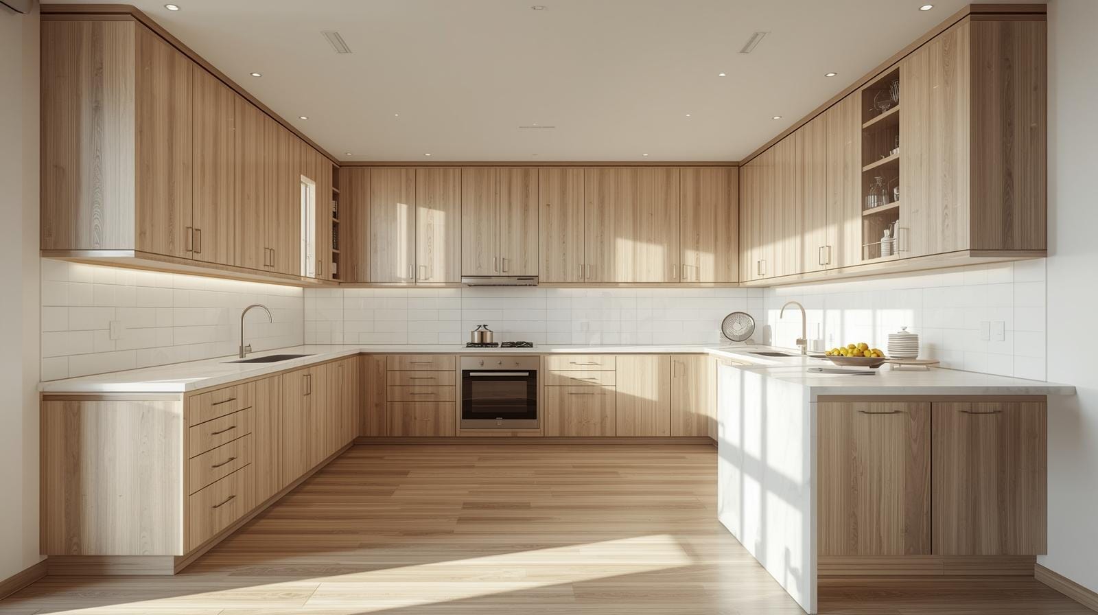 3.3. Tủ bếp chữ U – Rộng rãi và tiện nghi