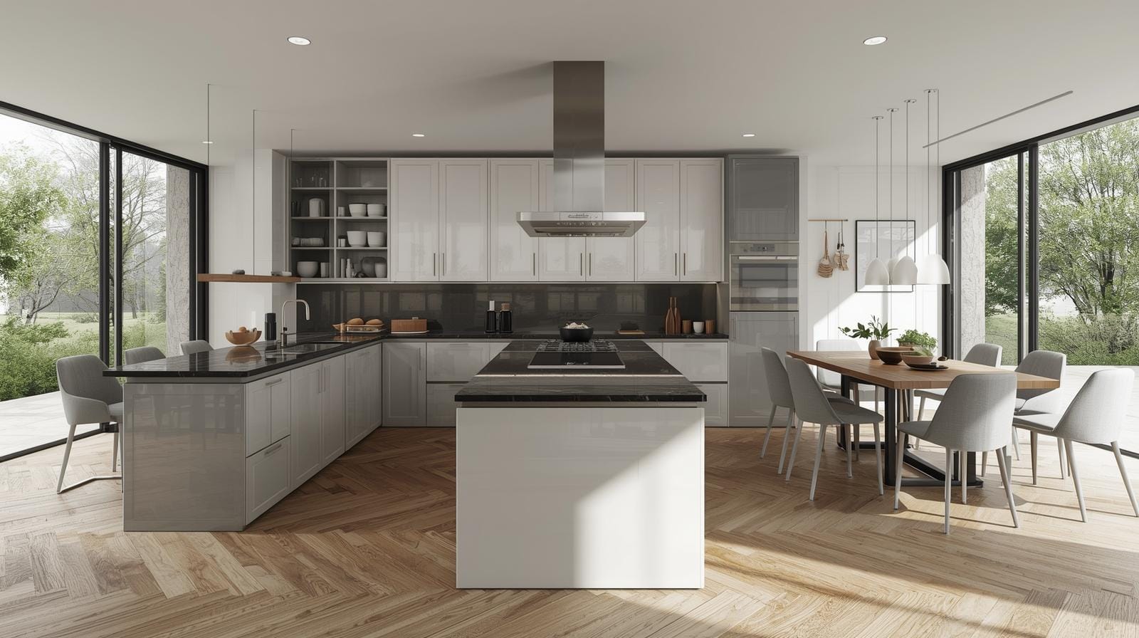 Xu hướng “living kitchen” biến phòng bếp thành trung tâm sinh hoạt gia đình. Tủ bếp hiện đại thường được kết hợp cùng phòng khách và phòng ăn trong một không gian mở.