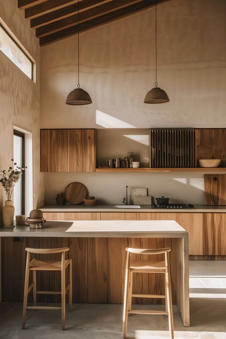 Tủ bếp gỗ tự nhiên luôn mang đến vẻ đẹp sang trọng và độ bền cao theo thời gian. Các loại gỗ thường được sử dụng bao gồm gỗ sồi, gỗ xoan đào, gỗ óc chó hoặc gỗ căm xe. Với những căn bếp yêu cầu sự cao cấp và bền chắc lâu dài, tủ bếp gỗ tự nhiên là lựa chọn được nhiều gia đình ưu tiên.