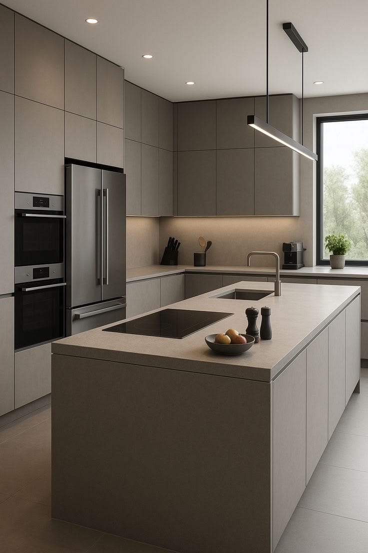 Ngoài yếu tố công năng, tủ bếp đẹp hiện đại còn mang lại giá trị thẩm mỹ cao cho ngôi nhà. Những gam màu sáng như trắng, xám, vân gỗ hoặc màu trung tính giúp không gian bếp trở nên rộng rãi và sang trọng. Đặc biệt, nhiều gia đình còn kết hợp tủ bếp với đảo bếp hoặc quầy bar mini để tạo điểm nhấn nổi bật cho căn bếp.