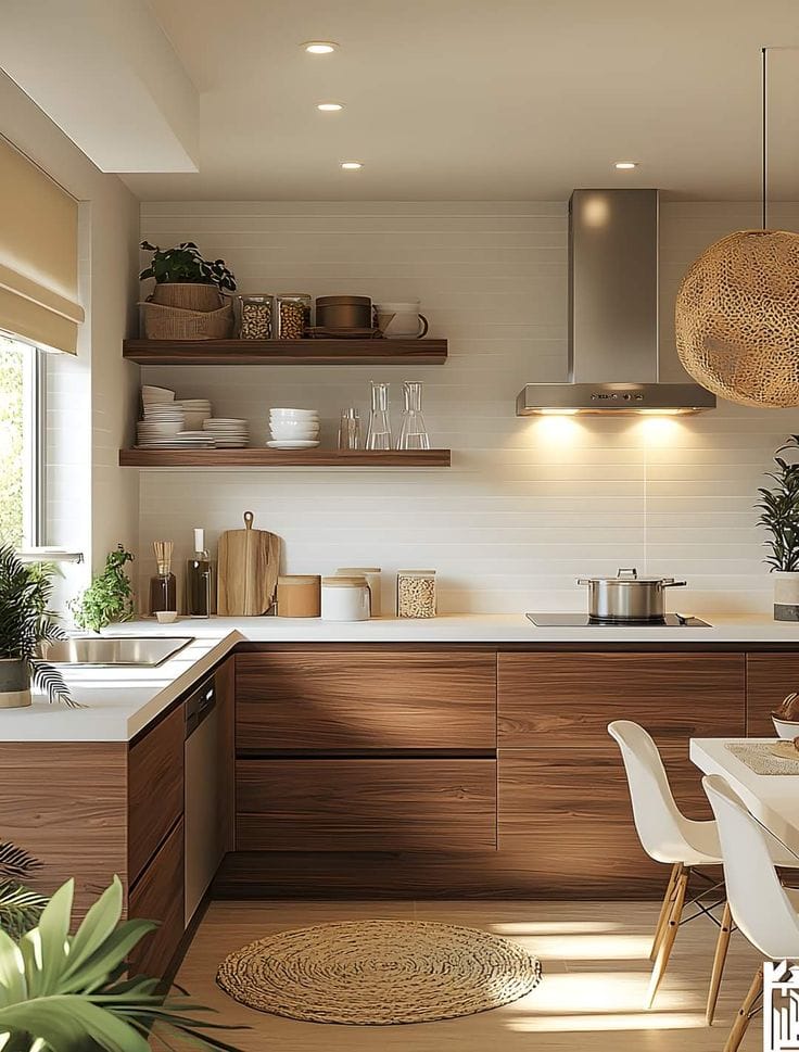Bên cạnh đó, tủ bếp gỗ tự nhiên vẫn luôn được nhiều gia đình yêu thích nhờ vẻ đẹp sang trọng và độ bền cao. Các loại gỗ thường được sử dụng gồm gỗ sồi, gỗ xoan đào hoặc gỗ óc chó. Tuy nhiên, chi phí của tủ bếp gỗ tự nhiên thường cao hơn so với gỗ công nghiệp.