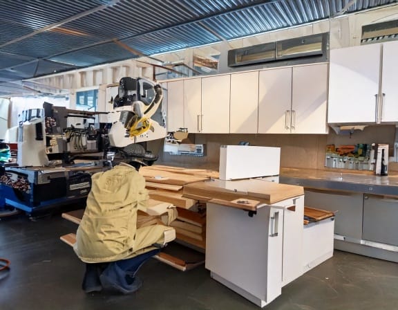 Tại xưởng, khách hàng có thể lựa chọn nhiều dòng tủ bếp khác nhau như tủ bếp gỗ công nghiệp, tủ bếp gỗ tự nhiên, tủ bếp acrylic, laminate hoặc melamine. Mỗi sản phẩm đều được thiết kế theo kích thước thực tế của căn bếp, giúp tối ưu diện tích sử dụng và tạo sự tiện nghi trong quá trình nấu nướng. Đội ngũ thợ lành nghề cùng hệ thống máy móc hiện đại giúp các chi tiết tủ bếp được gia công chính xác, bền đẹp theo thời gian.